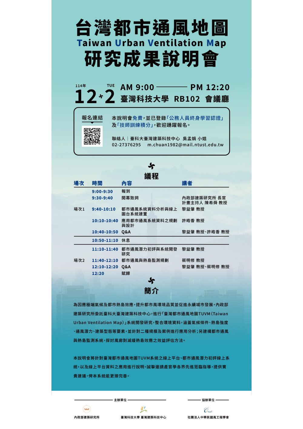 邀請參加「臺灣都市通風地圖成果說明會」(114/12/2)
